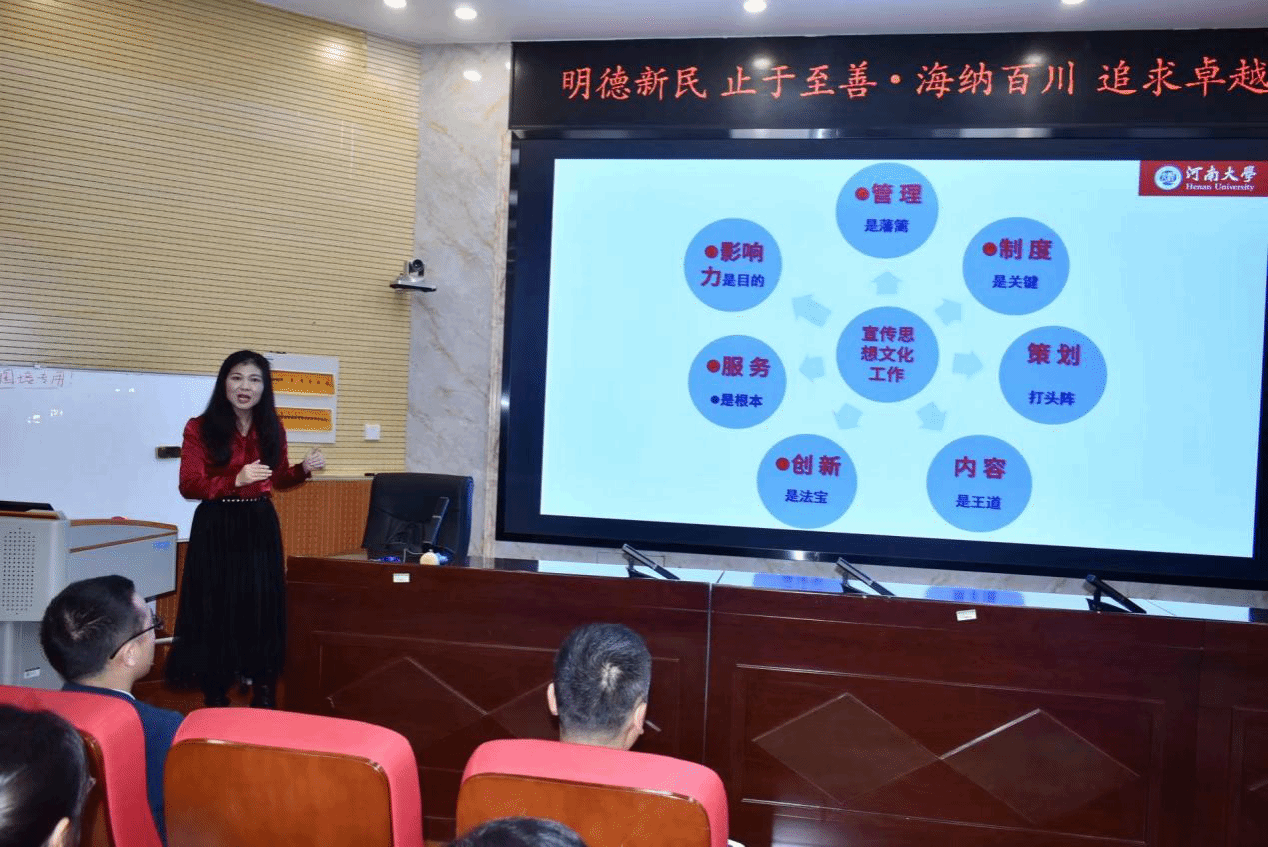 赵雪以“深学笃用习近平文化思想,谱写宣传思想文化工作新篇章”为题,从“习近平文化思想的多维透视、担当新的文化使命、做好宣传思想文化工作”等方面进行专题报告。报告系统阐释了习近平总书记关于宣传思想文化工作的重要论述,强调了宣传思想文化工作是一项极端重要的战略性工作,我们要从政治高度把握宣传思想文化工作的重大意义,不断增强文化自信和使命担当。作为中层干部,要牢牢把握国家方针政策,履职尽责,做个实干家,又要注重宣传,做个宣传家,“实干是宣传的底色,宣传是实干的升华”。