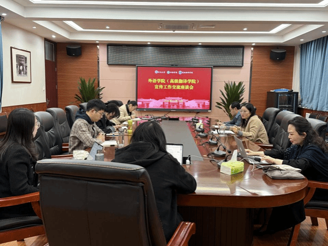 为进一步提升学院宣传工作的传播力、引导力和影响力,更好地服务学院中心工作,展示师生风采,助力学科发展,3月12日上午,在外语北楼二楼多功能厅召开外语学院(高级翻译学院)宣传工作交流座谈会。学院党委书记王玉珍、院长张璟慧、各科室负责人、辅导员参加座谈会。座谈会由学院党委副书记杨飞云主持。
