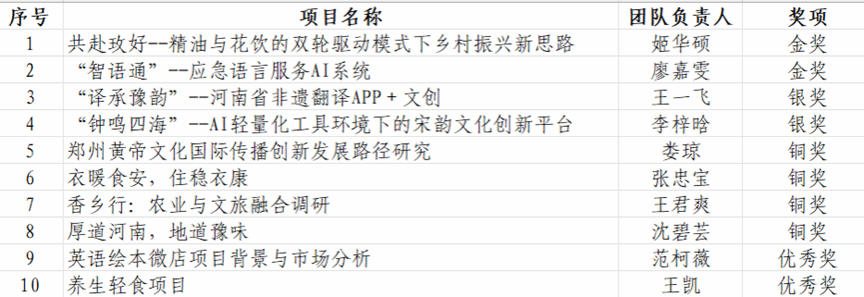 为激发广大青年学生创新精神,培育创业意识,提升社会化能力,进一步推动“大众创业、万众创新”,根据《关于举办河南大学2026年“挑战杯”大学生创业计划竞赛的通知》,结合我院实际,经个人申报、材料审查、现场答辩,最终评选出金奖2项,银奖2项,铜奖4项,优秀奖2项,金奖、银奖项目代表学院晋级下一轮比赛。现将获奖名单予以公布: