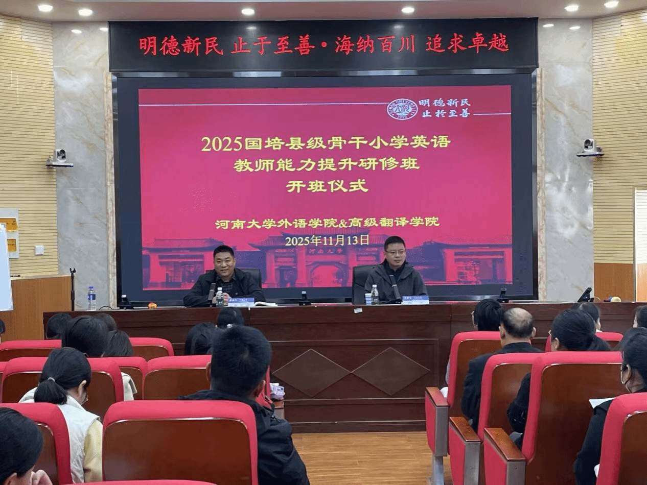 外语学院(高级翻译学院)召开党务知识... 外语学院(高级翻译学院)举行“国培计... 喜报|外语学院(高级翻译学院)学子荣... 外语学院(高级翻译学院)召开秋季学期... 外语学院(高级翻译学院)召开第四期中... 外语学院(高级翻译学院)举行“国培计... 情暖重阳,爱在西湖|外语学院(高级翻... 白云登高志更壮 ——河南大学广东校友会... 河南大学通识课《意大利文化》跨学科团... 外语学院(高级翻译学院)2025级新生集...外语学院(高级翻译学院)举行“国培计划”农村骨干教师能力提升培训—县级骨干教师项目(小学英语)开班仪式